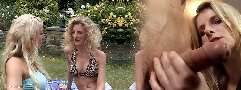 Naughty femmes pleasuring one lucky guy