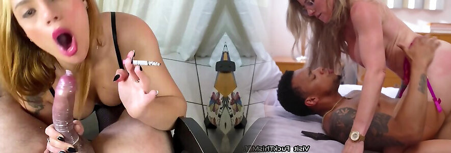 Curvy Blonde Brazilian Domina Smokes a Cigarette & Blows a Dick Before Making the Guy Cum On Her Tits