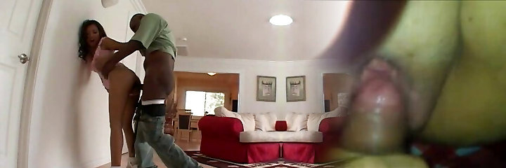 Insatiable dark-hued housemaid bent over and pounded from behind