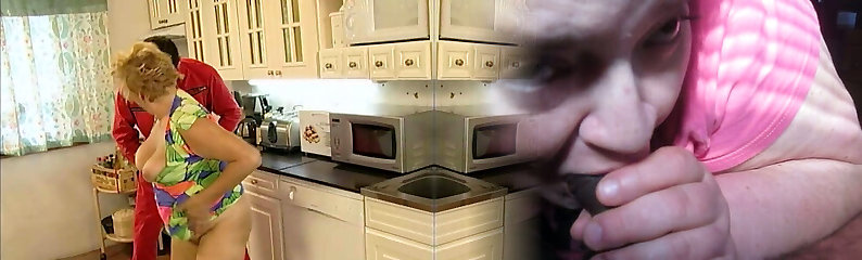 German old Grandma Erika 73 tempt to Fuck in kitchen by Young Guy
