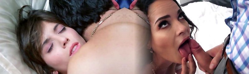 Hot brown-haired mia bangg gives pov blowjob before threesome