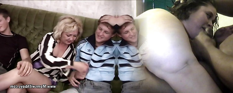 Blonde Mama in Three Way With Youthful Studs