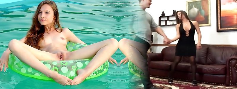 Young Nicolina undressing by the pool