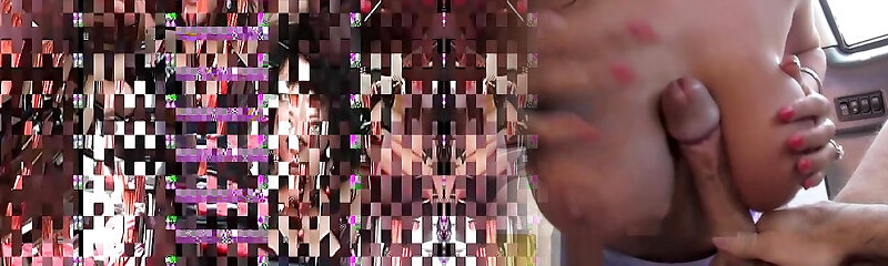 Tattooed German lady sitting on her slave's face in the van