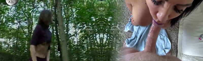 A stunning looking German brunette gets penalized in the woods