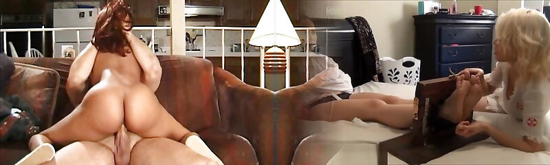 Stunning mommy in stockings fucks a handsome guy in sofa