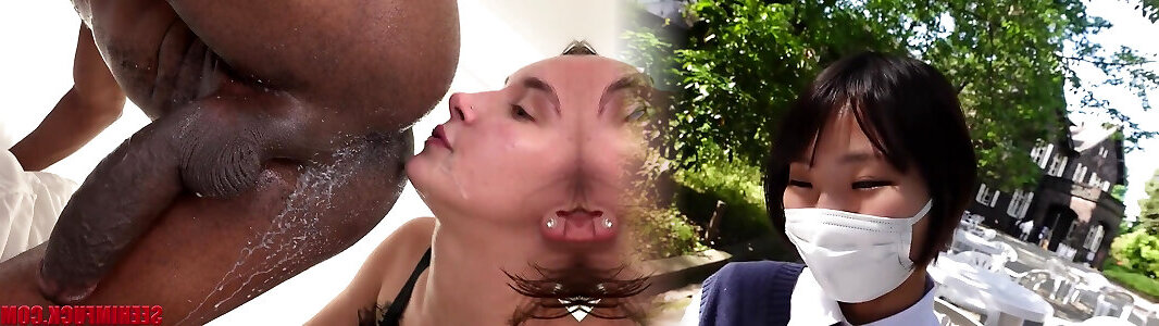 Dashing bitch licks the ass of a black male holds hair during head sits on his monstrous penis.