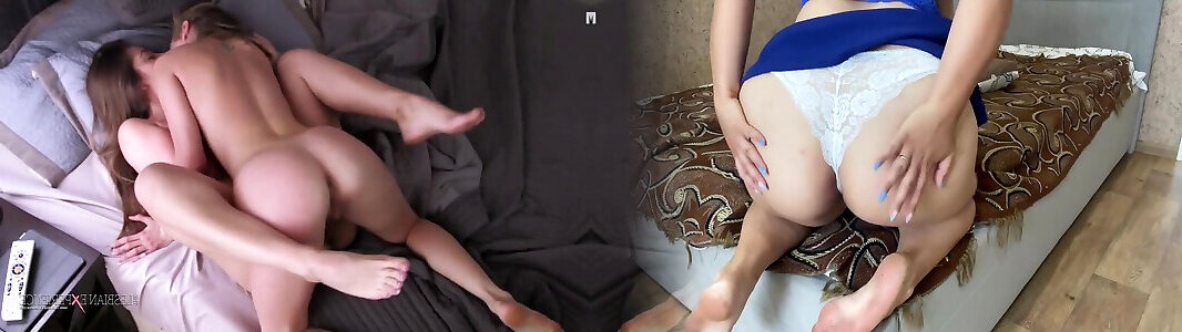 Sizzling and insatiable white young ladies having orgy on the sofa