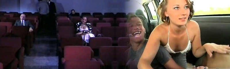 Beautiful classic huge-titted blondie in the car gives head to her fellow