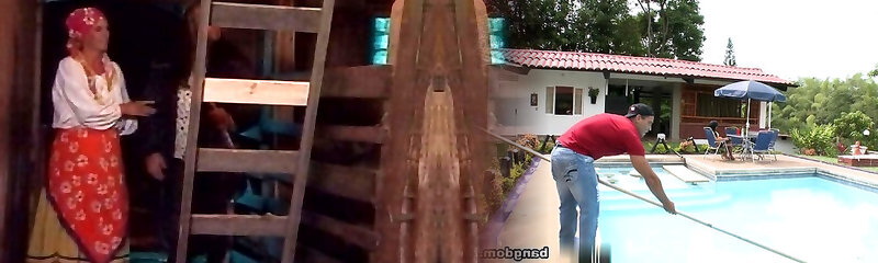 A gang of horny German ladies getting fucked by some rigid cock outdoors
