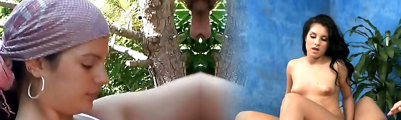 Two horny chicks plumbing with a stranger in the nature
