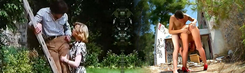 Hot and voracious European vintage blonde tonguing cum in the garden