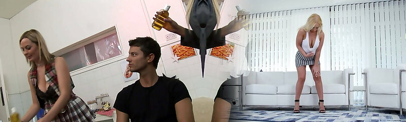 Voracious sex addicted blonde hottie on the couch gets two guys