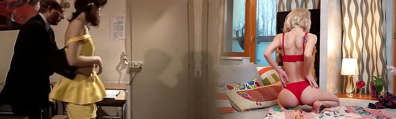 Blondinette with her tiny duvets is going to peep under the blows of dicks