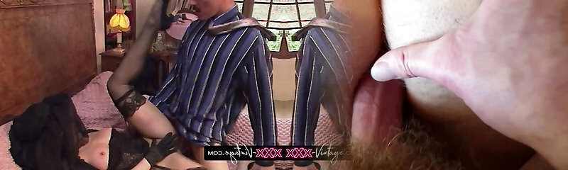 Brunette babe frigs herself in retro lingerie vintage nylons
