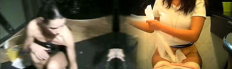Cute classic redhead bitch braless in the bathroom