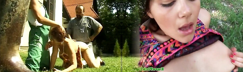 Busty French chick getting her holes pounded the forest