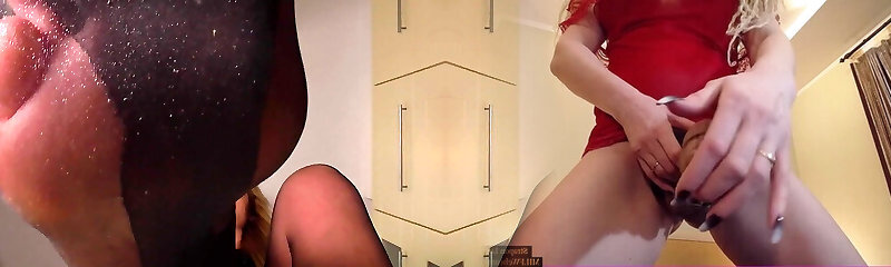 Redhead hoe licks fingers Milf pussy in nylon stockings