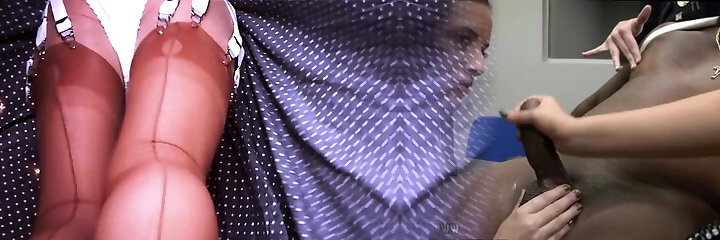 Brunette Milf wanks in retro nylons fuckbox ass teasing girdle