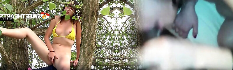 Chubby German lady luvs getting her shaved muff smashed outdoors