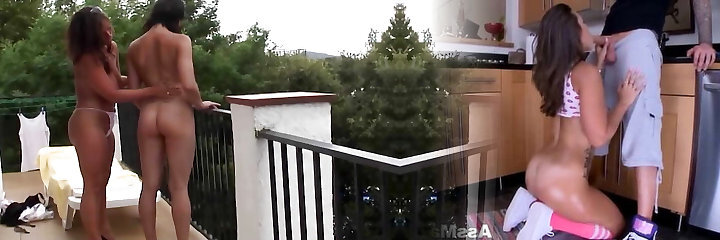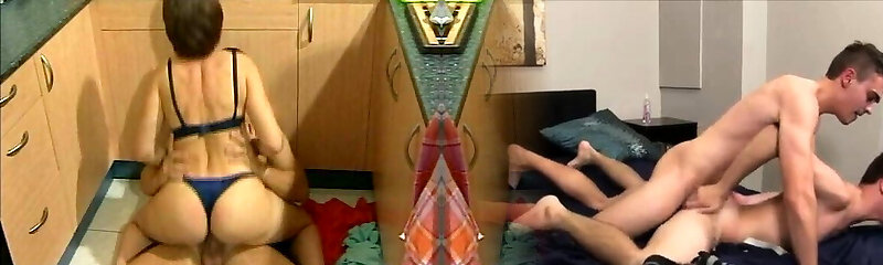 Stepmom is surprised by her stepson and sticks her large cock in the kitchen