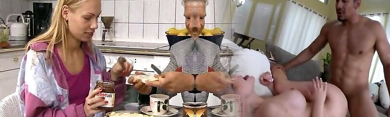 Rock Hard anal sex in a masked threesome fucking as at sexy platinum-blonde milf