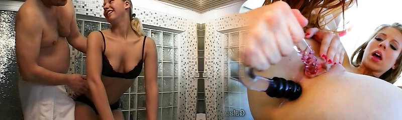 Brunette German teenage gets her asshole stretched in the bathroom